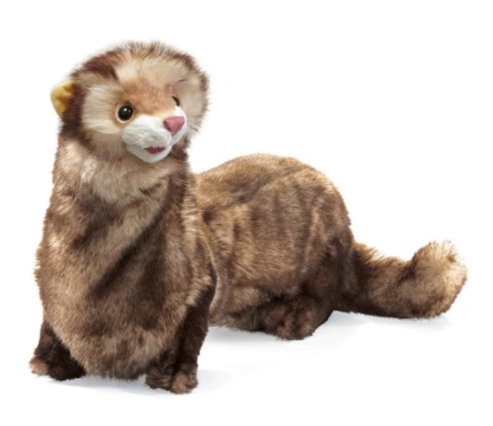 Ferret fans will love this beautiful slinky and butter-soft FERRET puppet! Slip your hand through the opening in his chest to work his mouth and let him weasel a smile out of you. Additional rear pocket for extra wriggling!