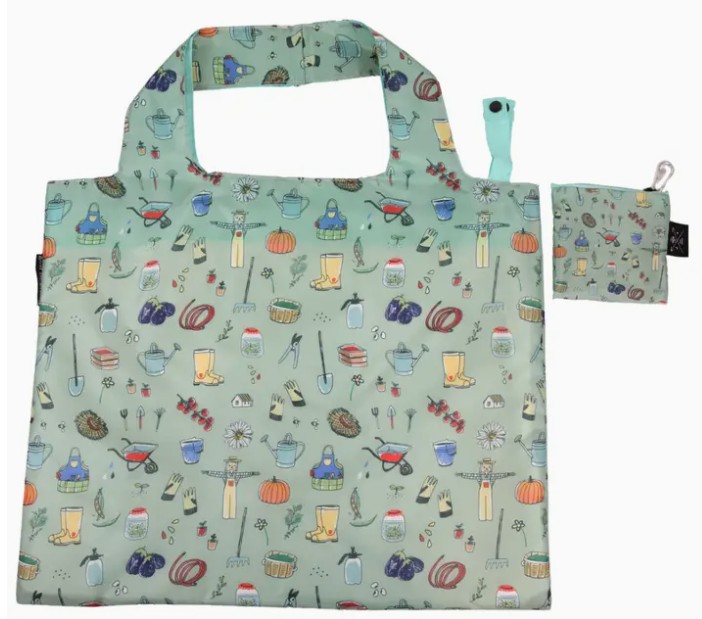 This bag is covered in emblems of the garden including pumpkins, tomatoes, rain boots, a scarecrow and more. Perfect for the farmer’s market