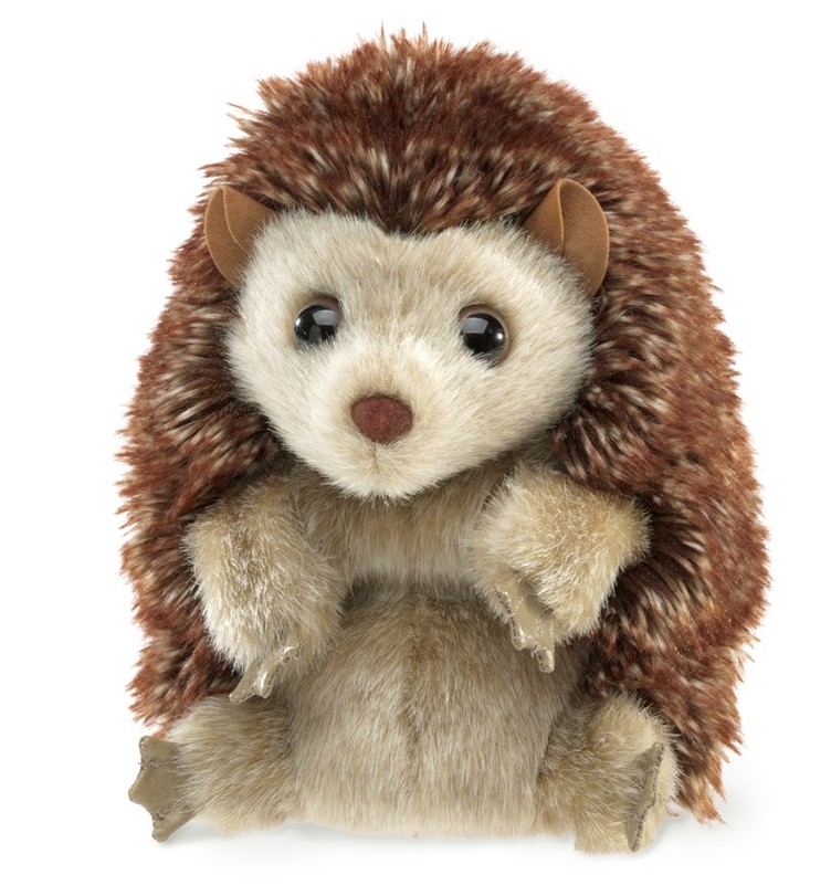 Don’t hedge your bets! This Folkmanis Hedgehog puppet has places for all five digits, has a soft, short plush face and underbelly and a shaggier back and head. It can turn inside out to form the kind of ball a real hedgehog rolls into for protection from predators.