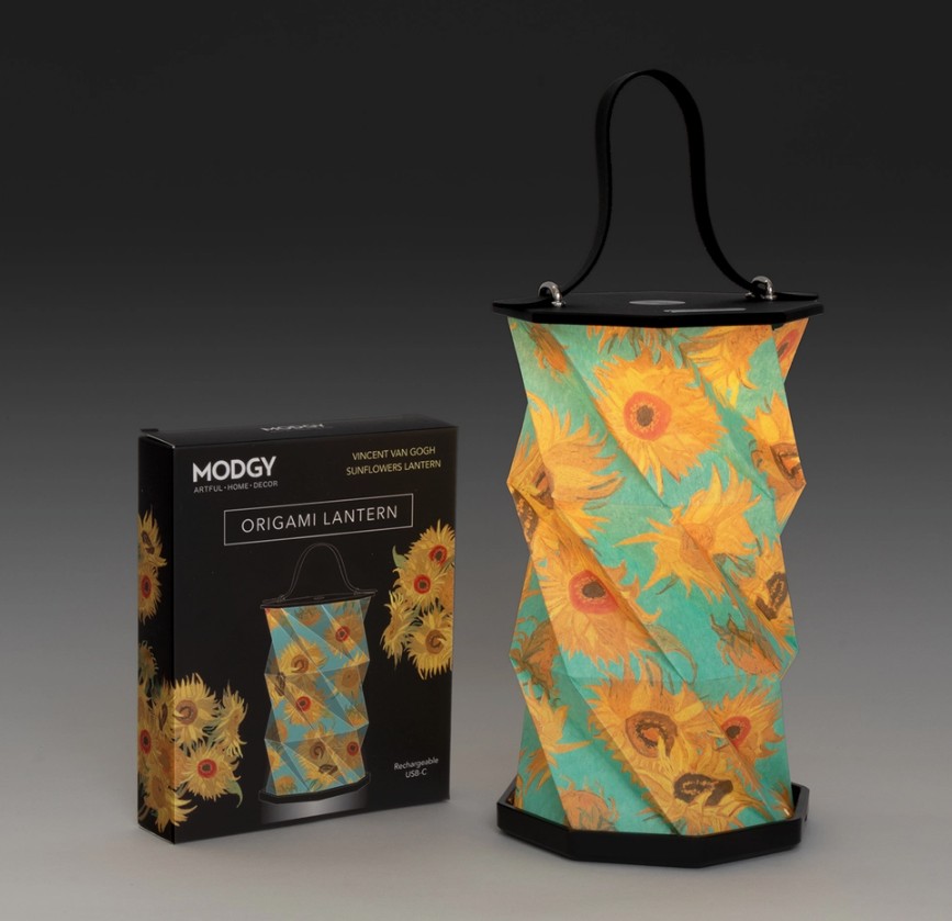 Modgy Origami Lanterns are beautiful and fun way to enhance any decor or event. Origami Lanterns are rechargeable and fold flat, then expand to three different sizes. They emit a warm, dimmable light and come with a carrying/hanging strap and a USB-C charging cord.