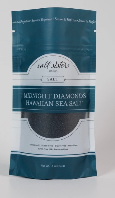 Deep, dark black in color and smoky in flavor, this sea salt is infused with activated charcoal made from coconut shells. This authentic Hawaiian sea salt is harvested from the pristine ocean waters surrounding the island of Molokai and blended with only the finest ingredients, resulting in exquisite taste and an unmatched mineral content. 4oz.