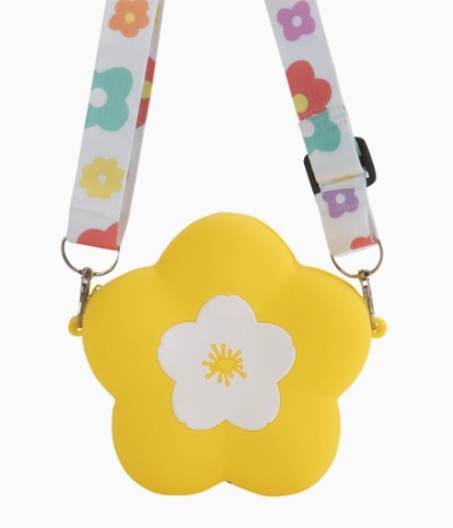 a sweet silicone purse for your sweet girl! Features figit pop-its on the back side! Coordinating multicolored crossbody strap.