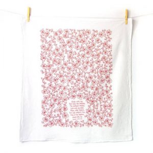 Abide With Me with floral design printed in blush on a 100% cotton tea towel. Comes folded with a belly band for gift giving. This tea towel looks lovely when folded to display on your sink or oven. 100% cotton, machine washable.