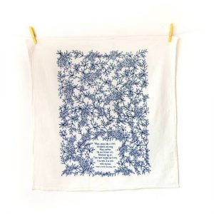 It is well with my soul with floral design printed in cobalt on a 100% cotton tea towel. Comes folded with a belly band for gift giving. This tea towel looks lovely when folded to display on your sink or oven. 100% cotton, machine washable.