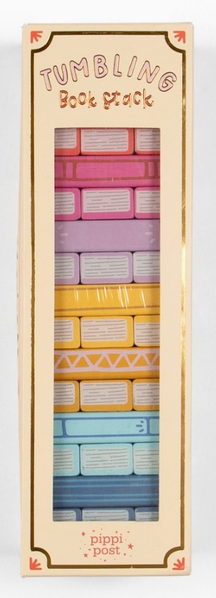 Put your steady hands and literary love to the test with this bookish twist on a classic stacking game! The Tumbling Book Stack features wooden blocks designed to look like colorful book spines, making it the perfect game for book lovers of all ages. Carefully remove a block and place it on top?just don?t let the stack tumble! Great for family game nights, book club gatherings, or as a charming gift for readers, this game combines skill, strategy, and a love for literature. Perfect for bookworms, librarians, and literary enthusiasts!